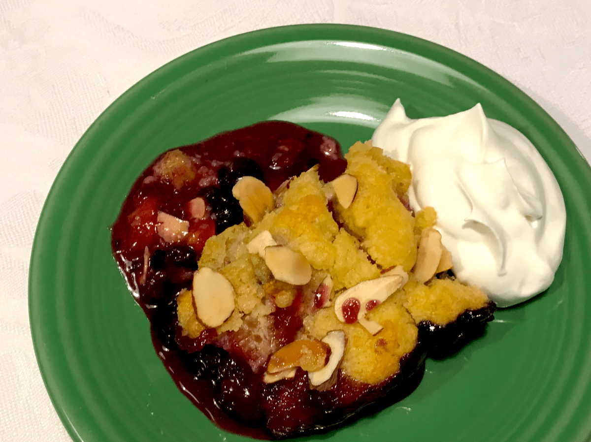 - In a well-greased 8” dish, arrange 3 cups of fresh fruit, set aside.